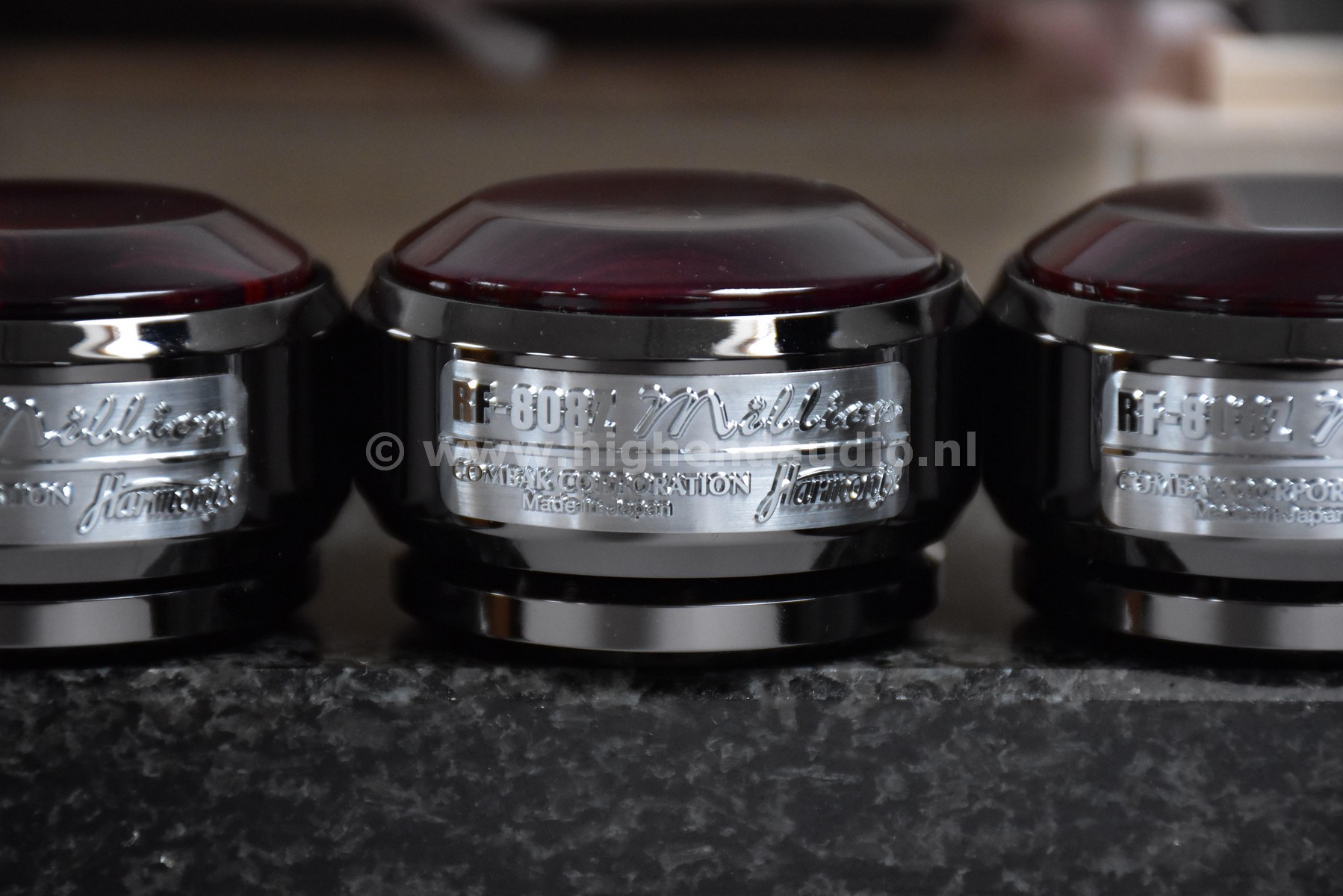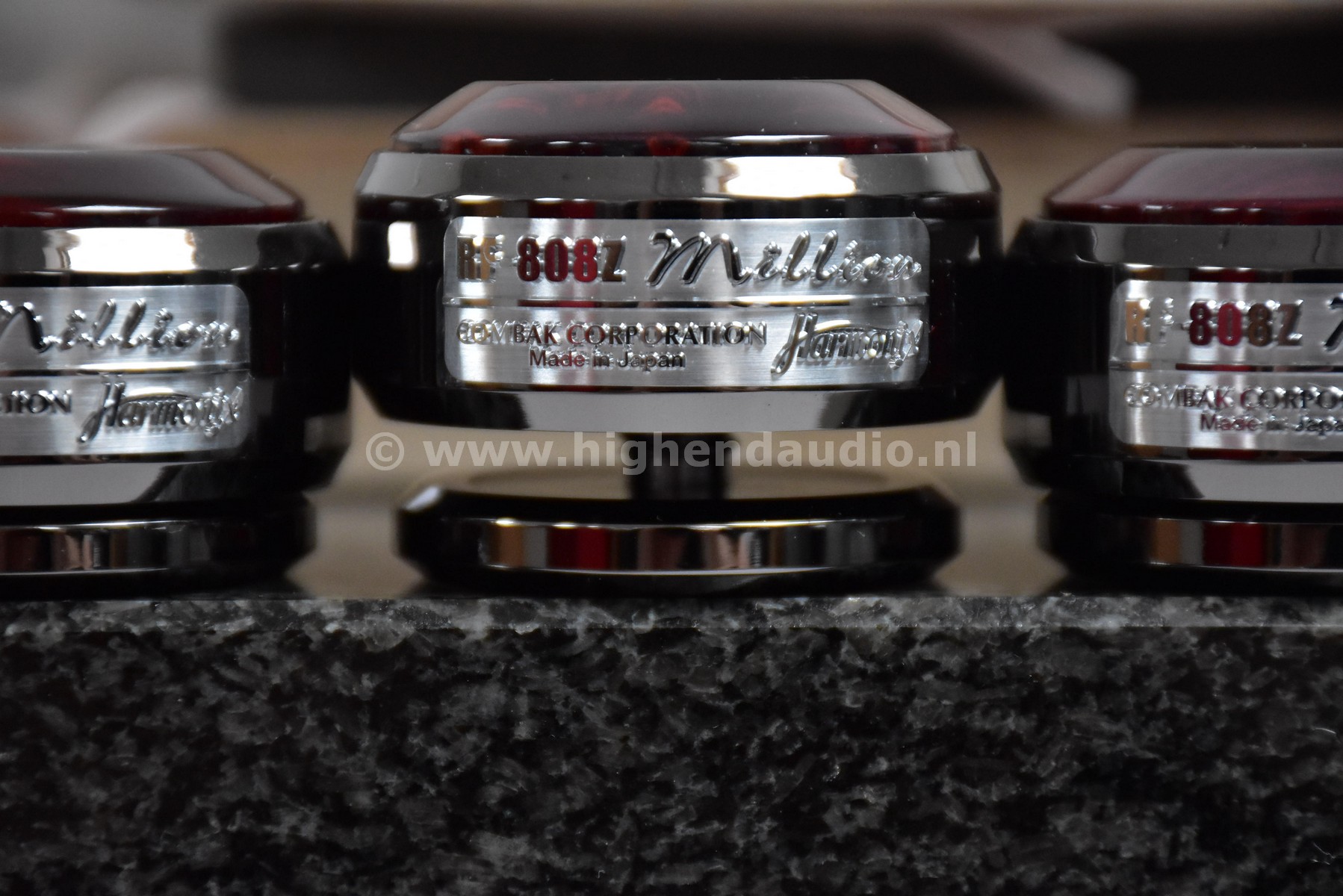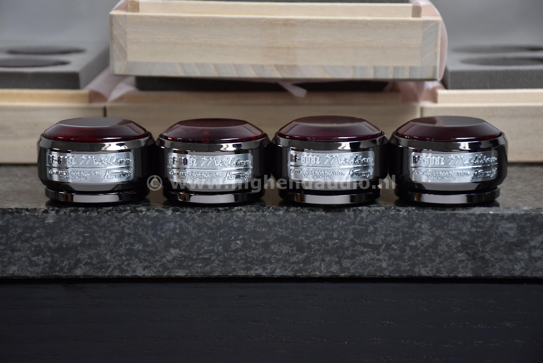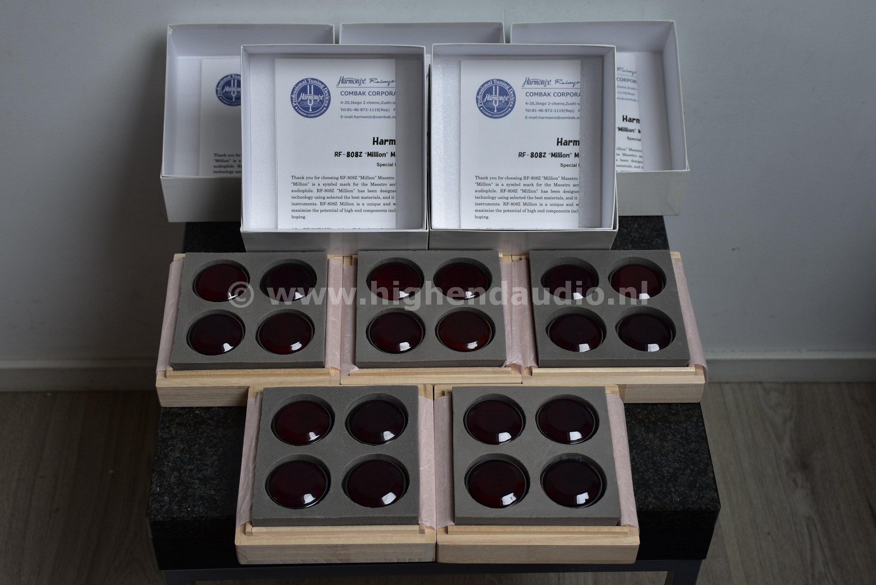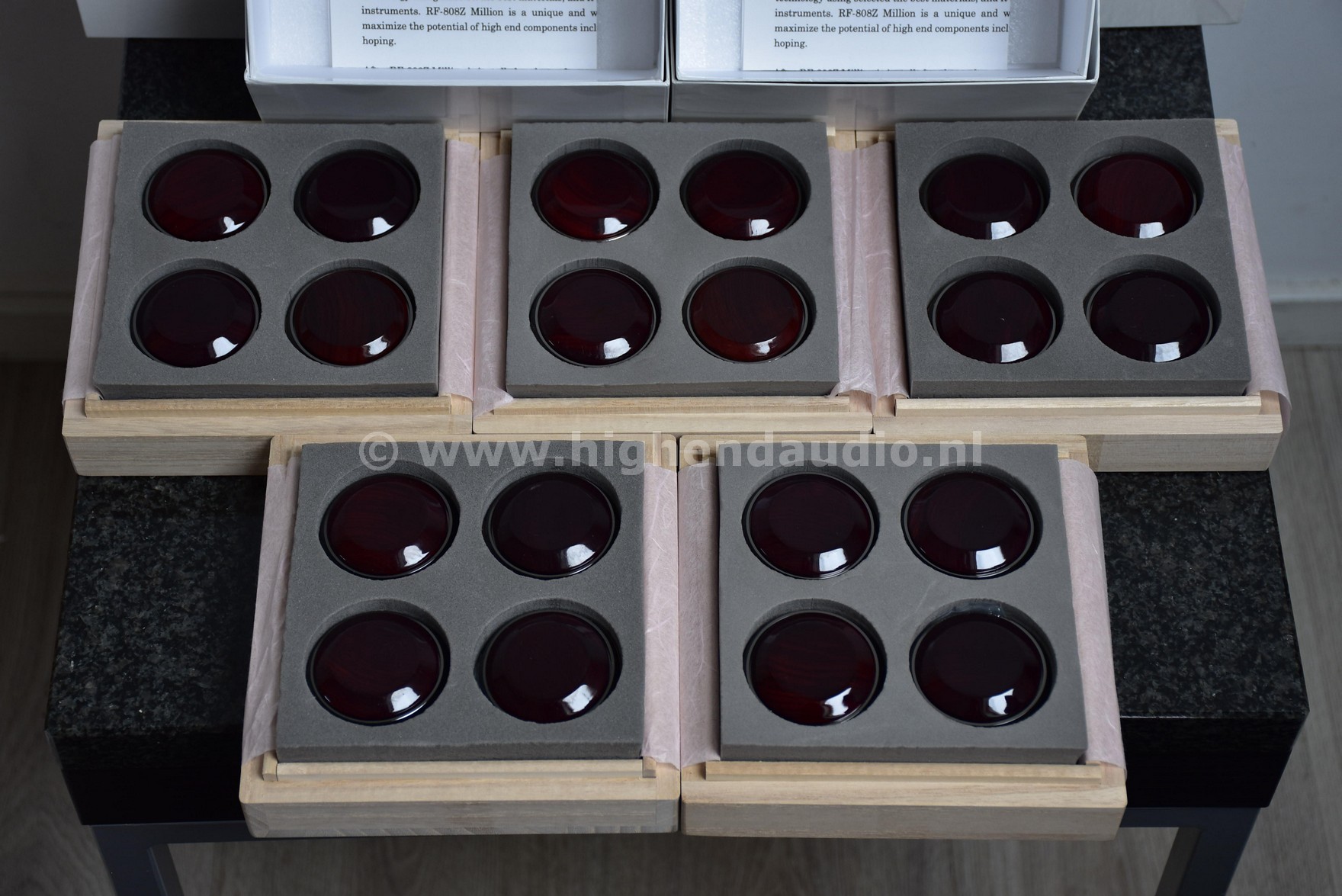 Reference Harmonix tuning feet, supplied in the original box. The Harmonix products are one of the few equipment “tuning devices” that actually works.